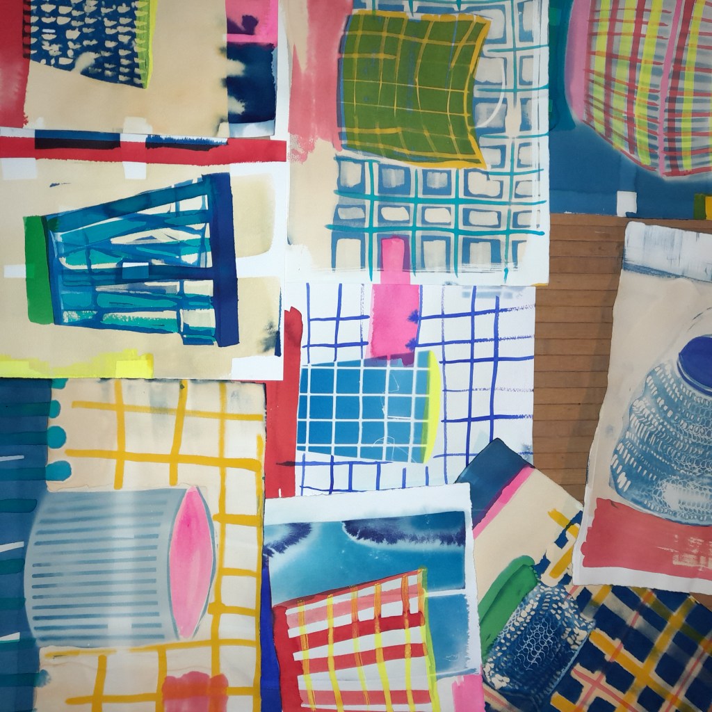 ( cyanotypes / hypochlorite / encres / acrylique sur papier 300g )